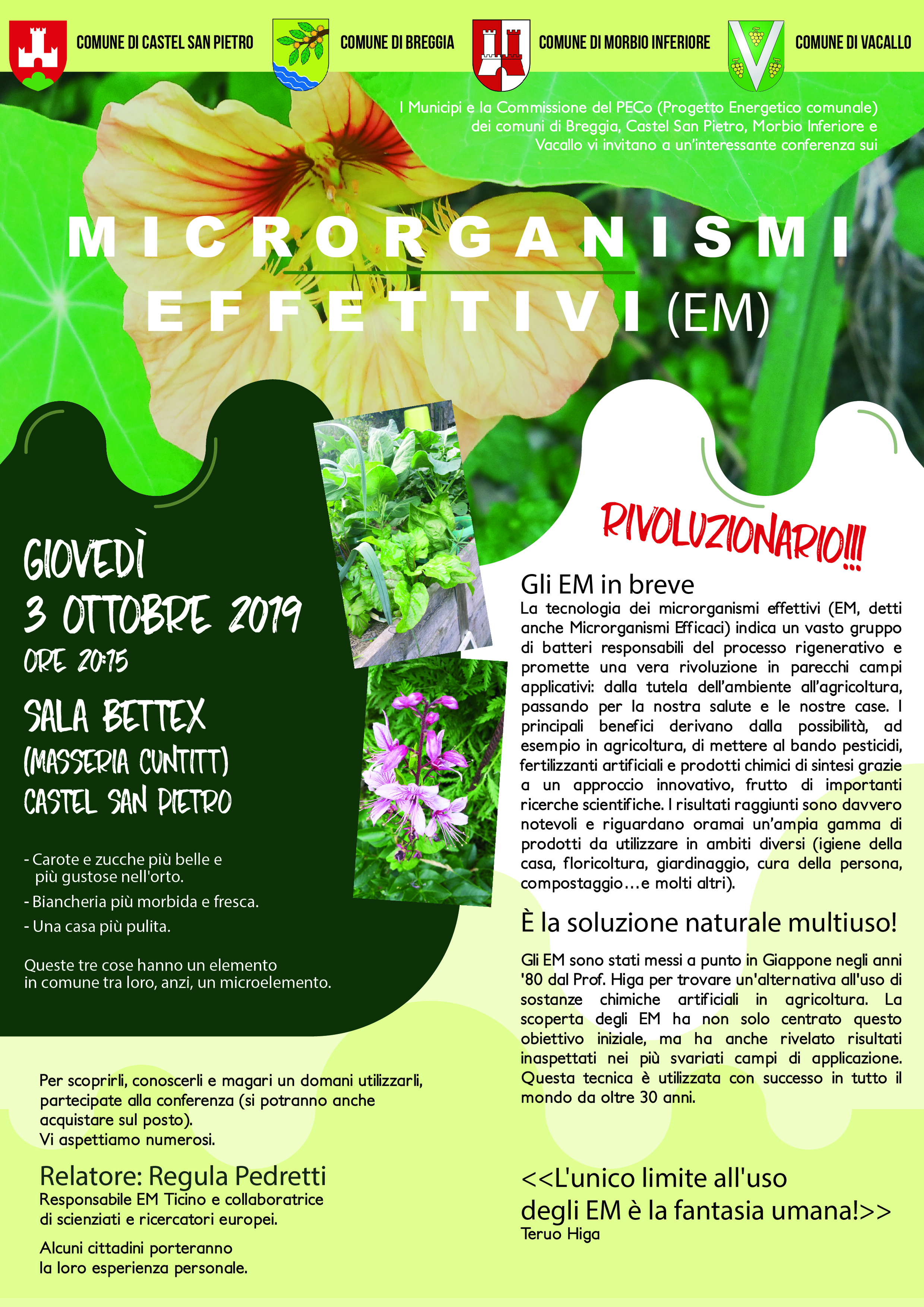 I Municipi e la Commissione PECo (Progetto Energetico comunale) dei Comuni di Breggia, Castel San Pietro, Morbio Inferiore e Vacallo sono lieti di invitarvi a un'interessante conferenza sui